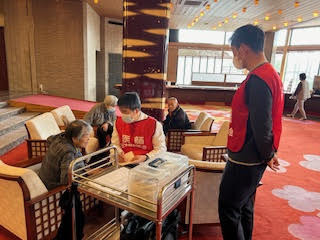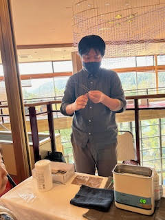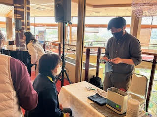 静岡から眼鏡市場さんにお越しいただき、山代温泉の加賀百万石で老眼鏡の配布と眼鏡の調整を行いました。