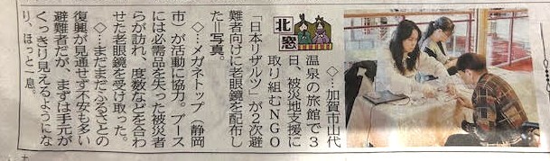 老眼鏡の配布の様子は、地元紙の北國新聞に取り上げられました。
