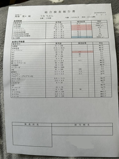 病院に行くと、怖くてブルブル震えてるうなちゃんですが、採血中も毎回お利口さんです。