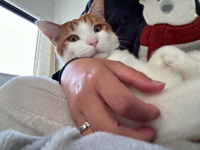 投薬後はいつも逃げたりするのですが、今朝は逃げずに膝の上でいてたので思わず写真撮りました🫣🤍!