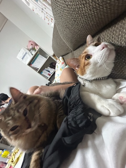 その上にずしんと座ってるモカちゃんです🫶