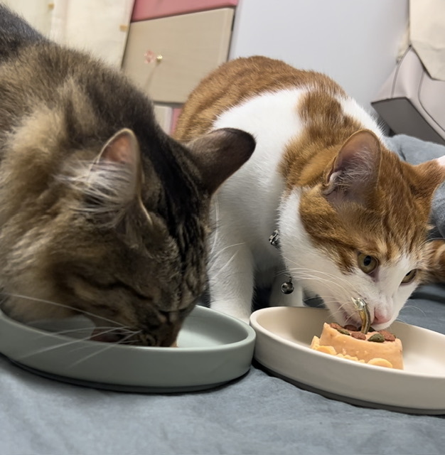 もかちゃんも同じの用意したよ!これからも元気にすくすく育ってね🐱🫧