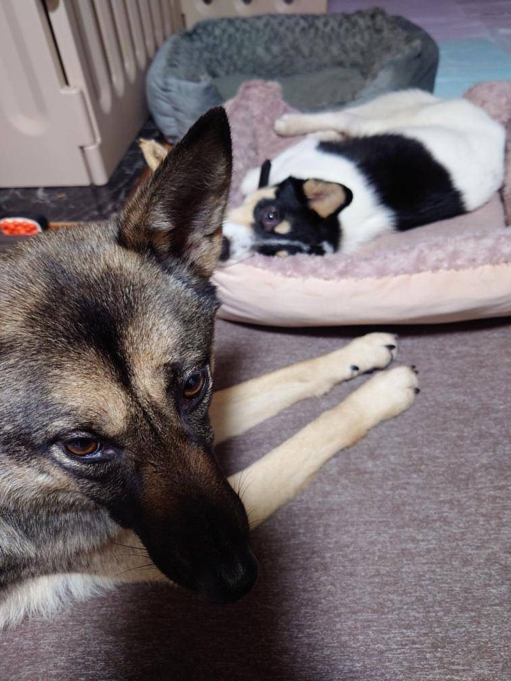 先住犬のバズ、ラン、ナギのお姉さん達も一緒に来てくださいました。