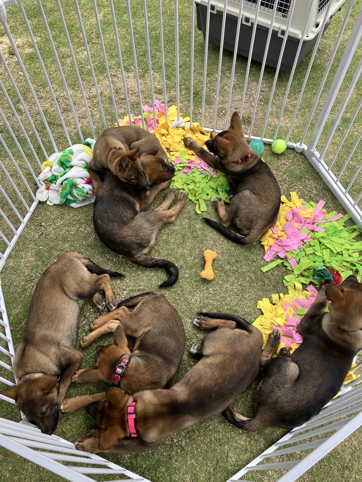 離乳食をしっかり食べられるようになってからはシェルターへ移動し、子犬たちの成長の早さに驚きを隠せません。
