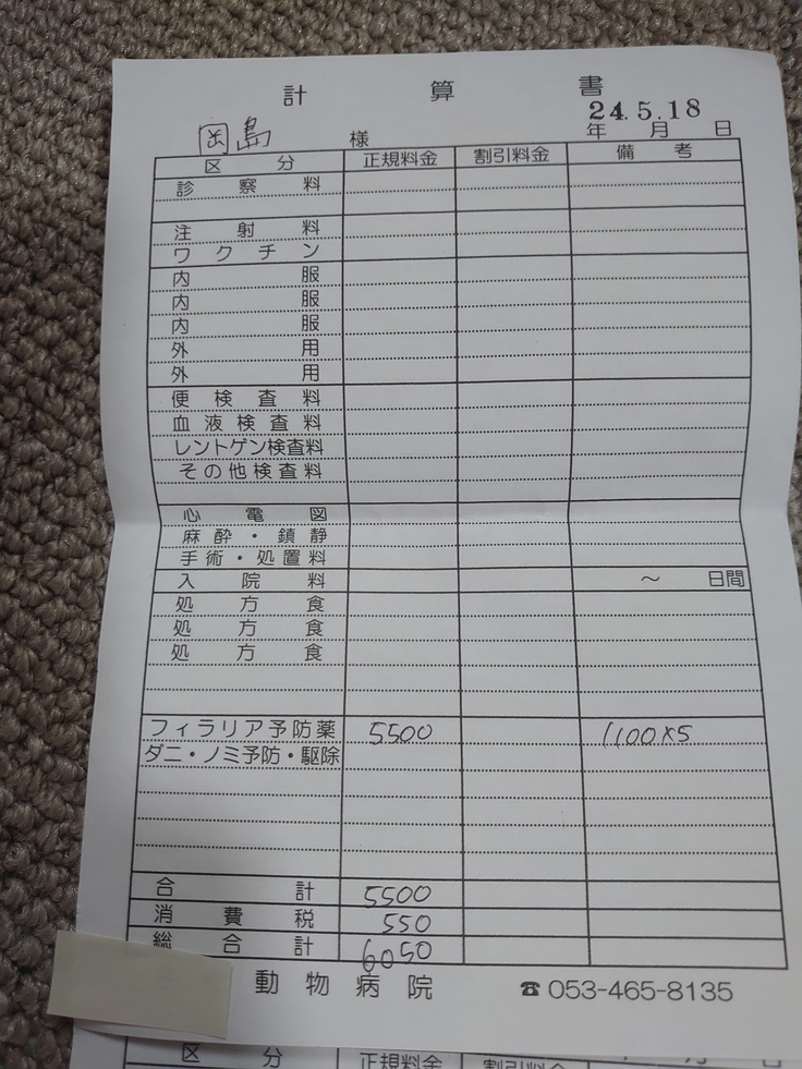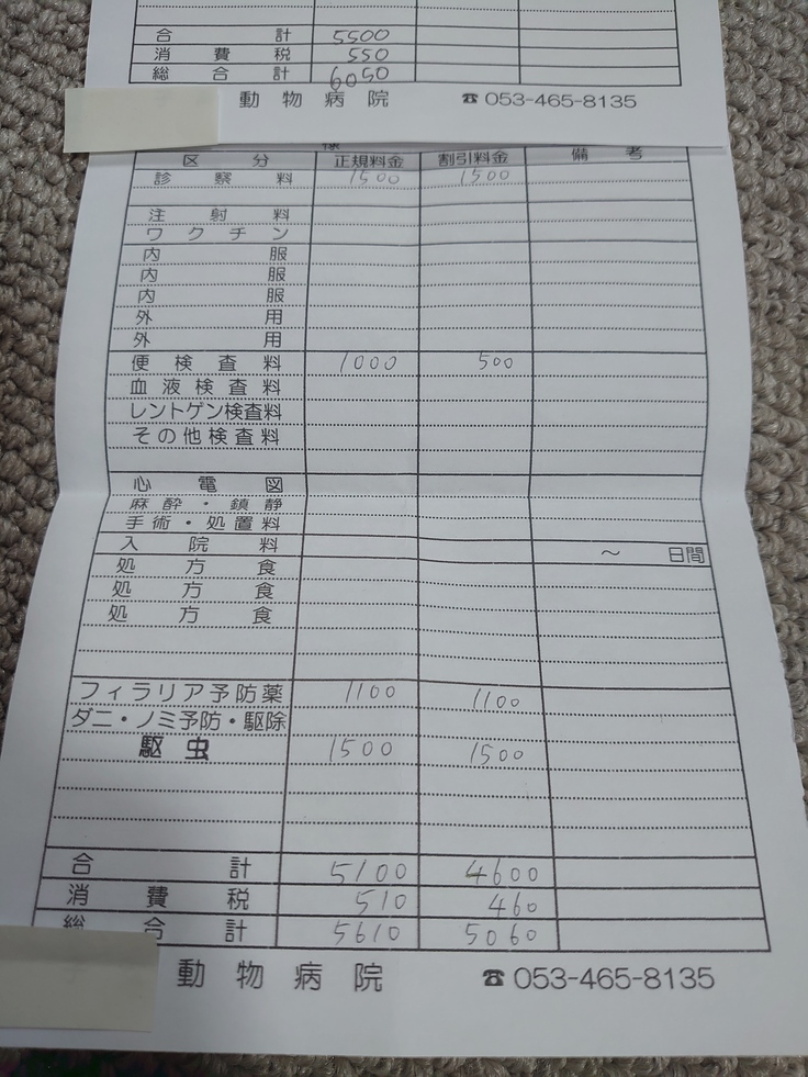 支援金からワクチンまでは2匹共にお支払いさせて下さい。