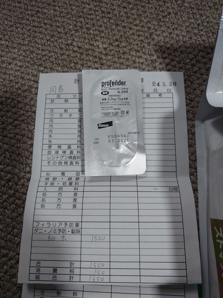 ミチル用の駆虫薬と獣医師から