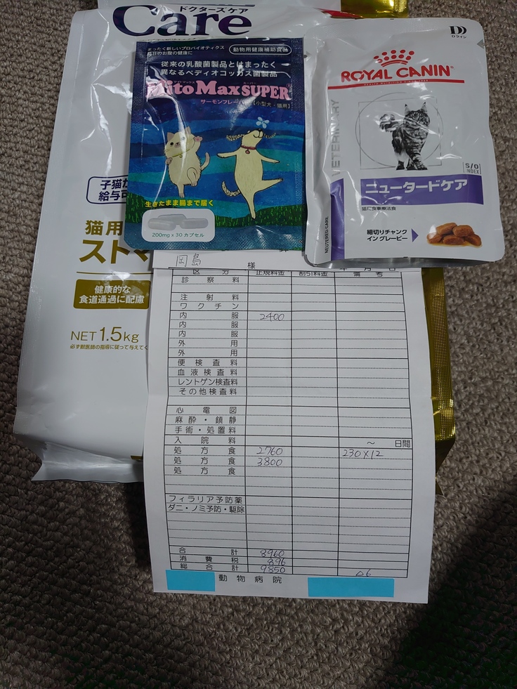 餌に混ぜる腸まで届くサプリを支援金からお支払いしました。