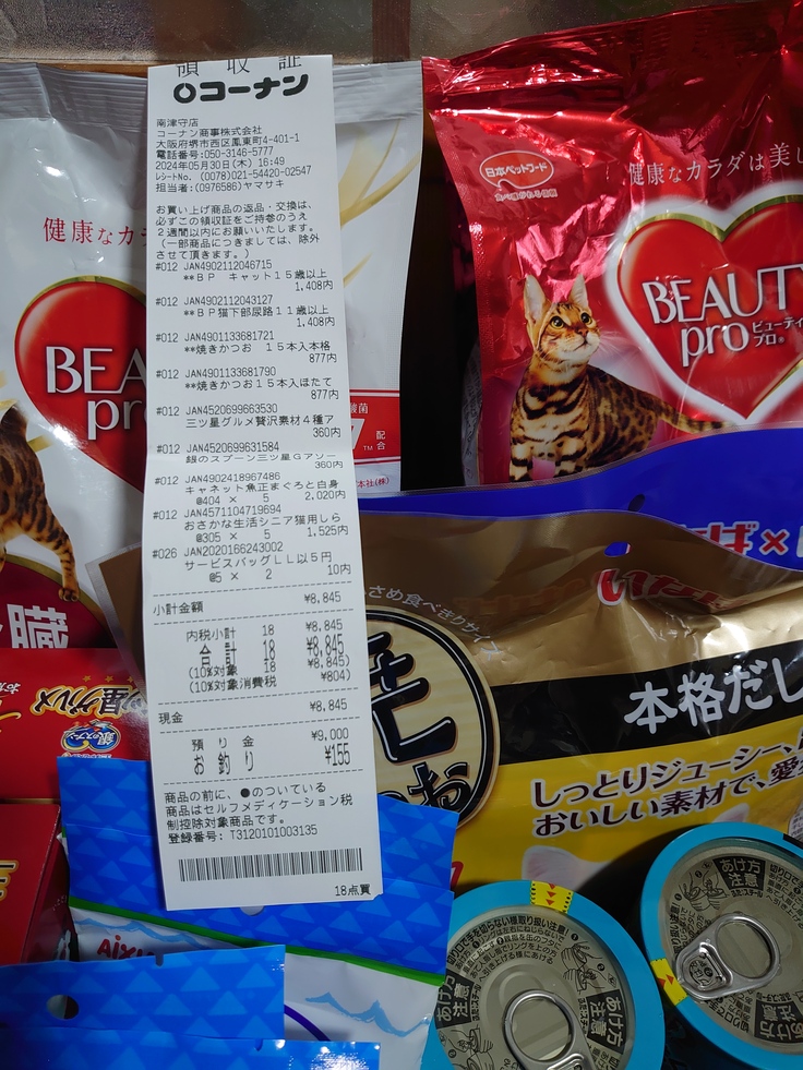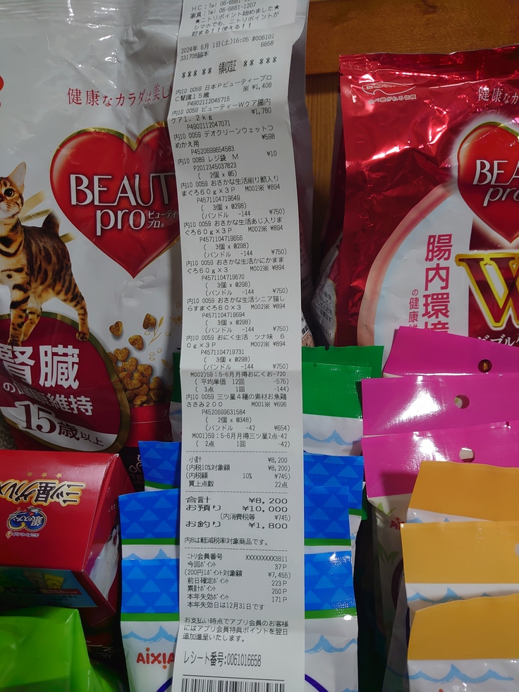 前回5月30日分のフード代8845円に本日の8200円を支援金からお支払いしました。