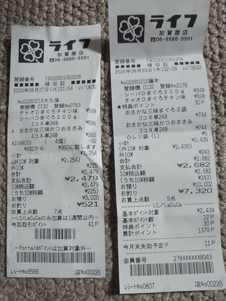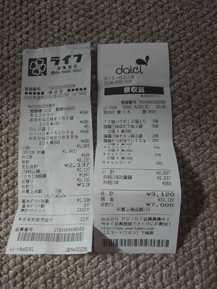 8月21日から8月29日までの収支報告です。