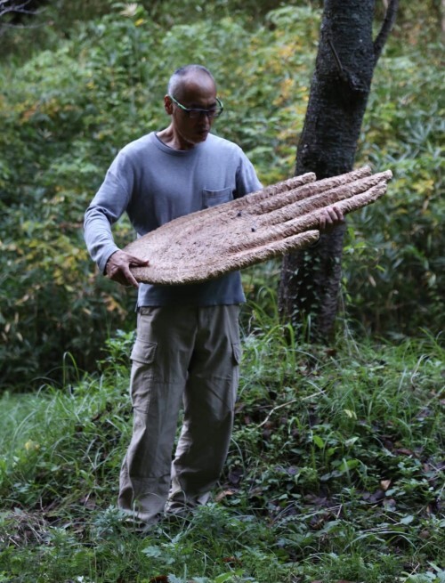 *木を手斧1本で叩くように彫り刻み、具象抽象を超えてダイナミックな生命エネルギーを形にし続けている。個展・グループ展・パフォーマンス・作品設置など多数。また、エッセイ集や絵本も出版している。
