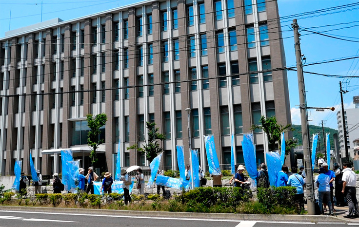 6月13日、福島地方裁判所で第2回口頭弁論が開かれました。当日は猛暑日でしたが約100人の原告と支援者が福島地方裁判所前に集まり、何としても被災地福島の裁判所に「差止」の判断をしていただきたいと熱いメッセージが沢山語られました。