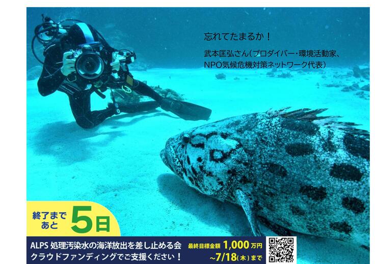 クラファン期間あと5日になりました。「いのちの海を守ろう!ALPS処理汚染水の海洋放出を差し止めよう」ご支援をよびかけていきます。