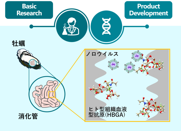 このプロジェクトは、海の宝石とも称される牡蠣の新たな未来を切り開くものです。これまでの科学的探求により、ノロウイルスが牡蠣の消化管内にある特定の糖鎖、Histo-Blood Group Antigens(HBGA)に結びつくことで牡蠣を感染源とすることが明らかにされました。この知見を土台に、我々はバイオテクノロジーの最前線に立ち、遺伝子操作を駆使してHBGAを持たない牡蠣を開発します。これは、ノロウイルスを根本から牡蠣に近づけさせない画期的な取り組みであり、結果として「ノロウイルスとは無縁の牡蠣」を世に送り出すことが目標です。