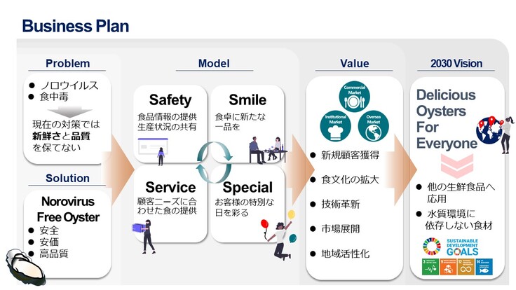私たちのビジネスは、牡蠣の養殖と販売、そして関連技術のライセンシングを通じて、水産業に新風を吹き込むことを目標としています。環境に配慮した養殖方法の開発と提供を通じて、持続可能な開発目標(SDGs)への貢献を図っています。私たちは経済的な成長の追求のみならず、環境保護と公衆衛生の改善にも注力し、その結果としてより健康で持続可能な世界の実現に貢献することを目指しています。このようにして、『VitaLab』は環境と社会に配慮したビジネスモデルを通じて、産業の持続可能な発展を推進しています。
