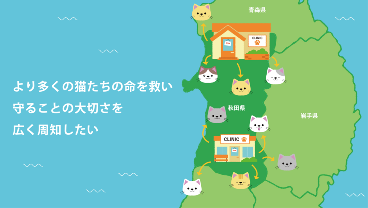 秋田県内では豊かな自然環境により野良猫の頭数も非常に多く、過去には猫の去勢や不妊手術の助成事業費として活用する為の「ふるさと型クラウドファンディング」を行った際に、目標金額の18倍にもなる金額が集まるほど地域として大きな地域課題となっています。