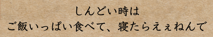 「しんどい時はご飯いっぱい食べて、寝たらえぇねんで!」って、