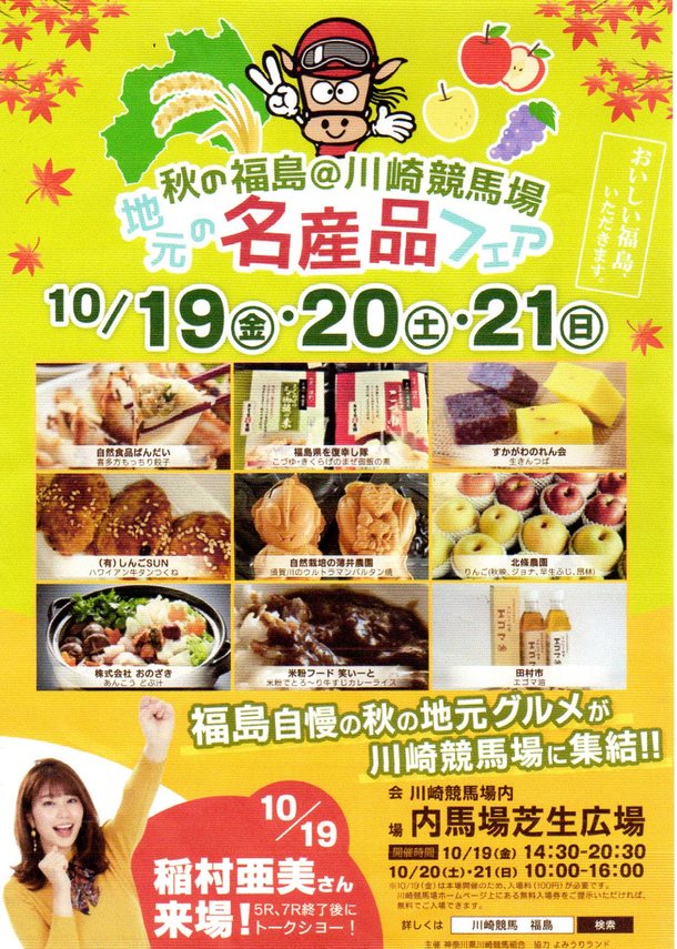 「秋の福島@川崎競馬場 地元の名産品フェア」に出店します。