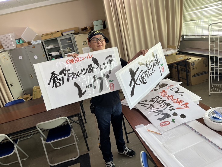 今日は出店されるお店さんの看板を、1件ずつ手作りしました!