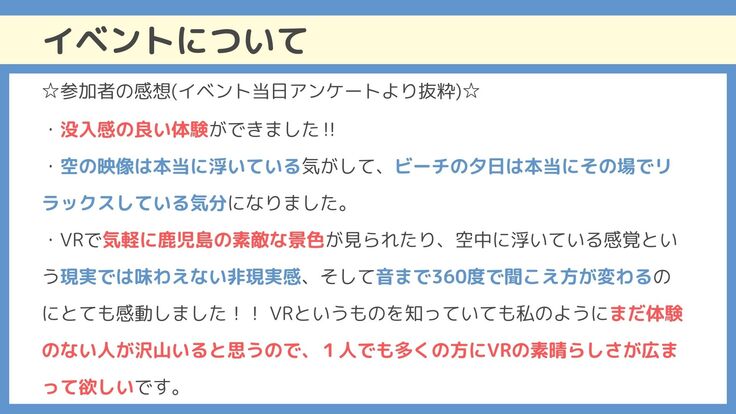 はい。それから、イベントの参加者よりコメントもいただいていました…そちらもご紹介いたします!