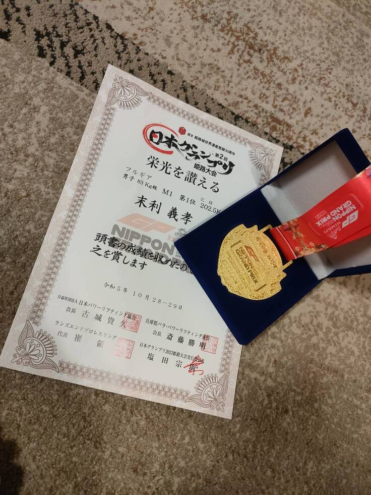 第2回日本グランプリM1(マスターズ1 【40歳~49歳】)83㎏級フルギアの部優勝