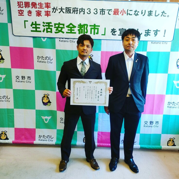 ベンチプレスの成績を認められ、市長表彰(大阪府交野市にて)は2度受賞