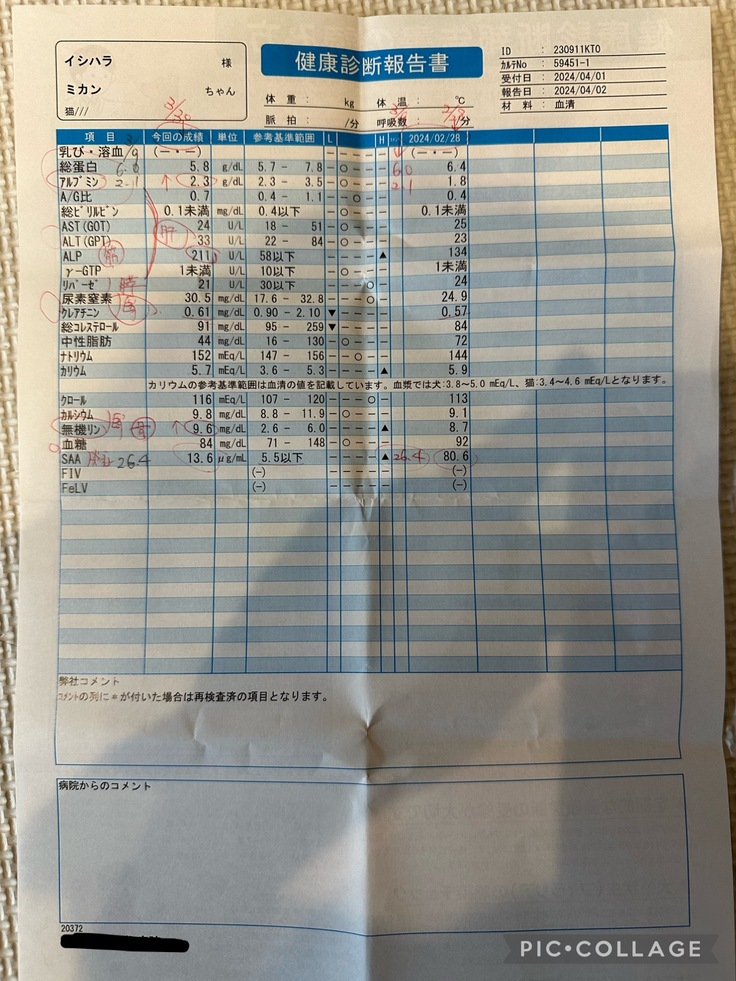 正常値と比べるとまだまだ炎症の値は高いけれど、症状も落ち着いていることから次回の検査は投薬終了の時で良いでしょうとのお話でした!