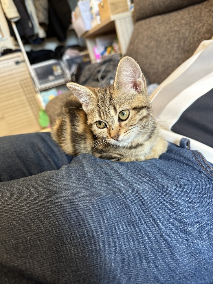 家族になってまだ日は浅いですが、隙あらば膝に乗って喉をゴロゴロと鳴らして甘えてくるような甘えん坊です。