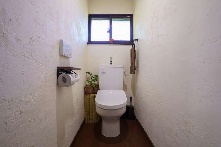 1つはグレーのクールなトイレと、1つは白ベースの温かみのある2種類のトイレに仕上げました!