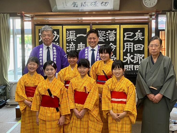 宮橋市長と山本教育長が、稽古場である西町公民館に子ども達への激励に訪問してくれました!