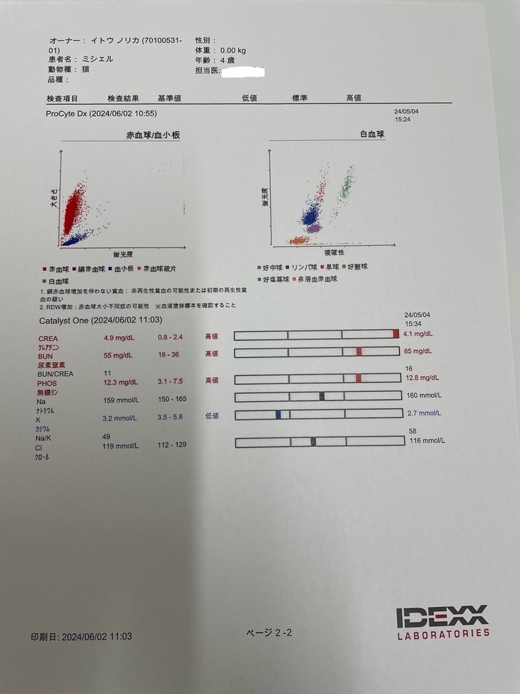 CREA 4.1→4.9 と数値が上がってしまいました💦(CREA 5.0以上がステージ4と言われているため、ギリギリステージ3の数値です。)