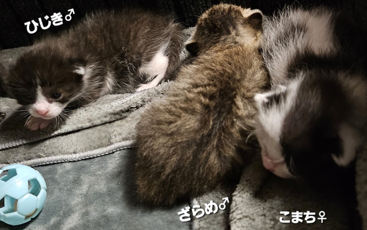 ◆あずき、ゴマちゃんに加えてひじき♂?、ざらめ♂、こまち♀が、家に引っ越して来ました!現在、生後2週間位です!