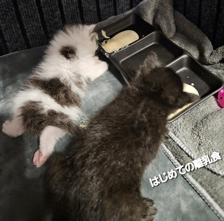 あずきちゃんとゴマちゃんはじめての離乳食です!