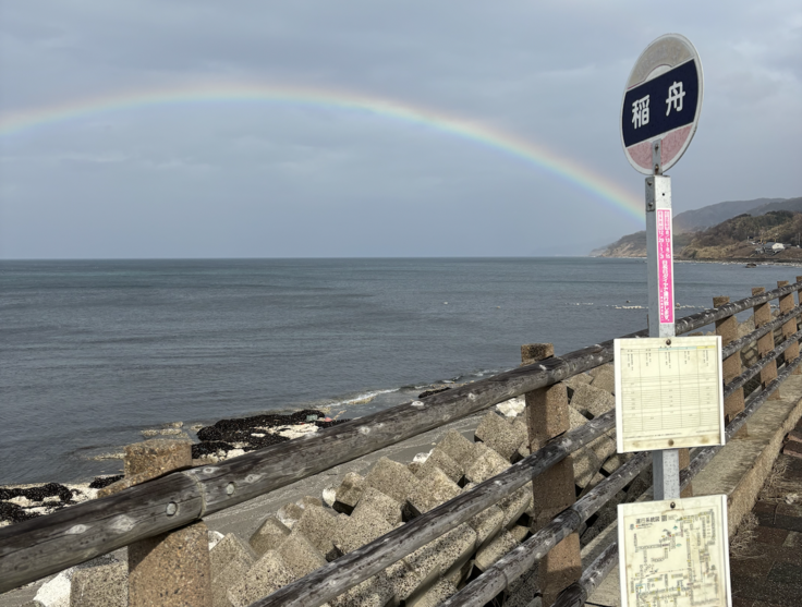 [輪島店前国道海岸通りの“バス停”、そして“虹”]