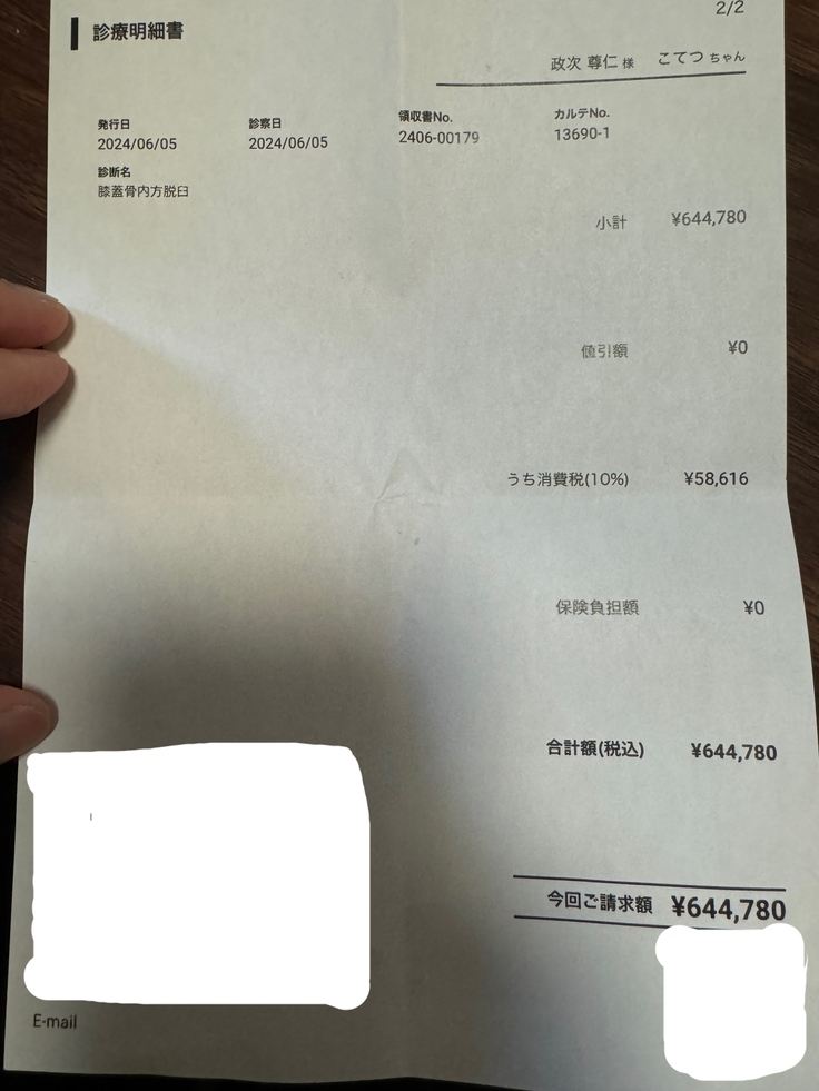 そこで別の医療センターへ問い合わせをしたところ、最大でも¥650,000で両膝の手術が可能であるとのことで受診をしました。