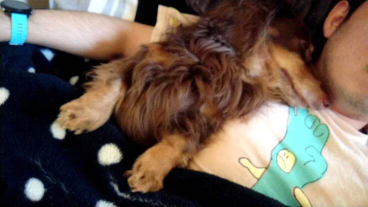 ポールは2歳の頃に前飼い主が保健所へ連れてこられた保護犬でした。ずっと口輪をされてたようでマズルの上が一部禿げてしまっていました。また極度に人への警戒心が強く譲渡は条件付きでしたが幸い僕は相性が良かったためかすぐに抱っこ出来るまで心を開いてくれて引き取ることになりました。