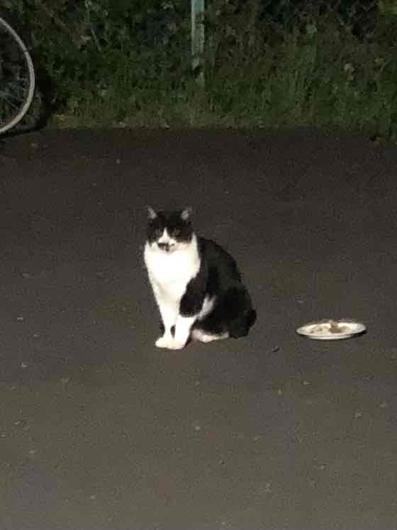 耳黒白ちゃんの捕獲トライ中、夜遅くに会った時、