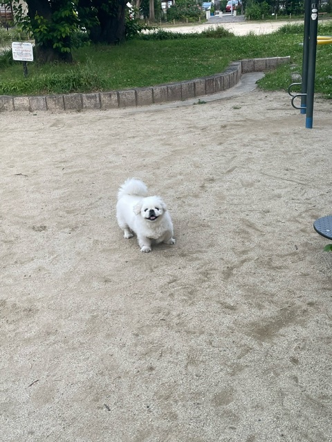🐶公園に誰もいなかったのでカートから降ろして散歩満喫中
