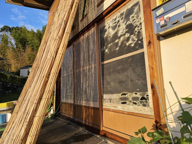 ◇作業場(農業倉庫)の出入口に取り付ける虫等の侵入を防ぐための扉は、写真のような引戸タイプで製作して頂きました。シャッターを全開にすることは殆どなく、必要に応じて枠ごと取り外すことができる形になっています。