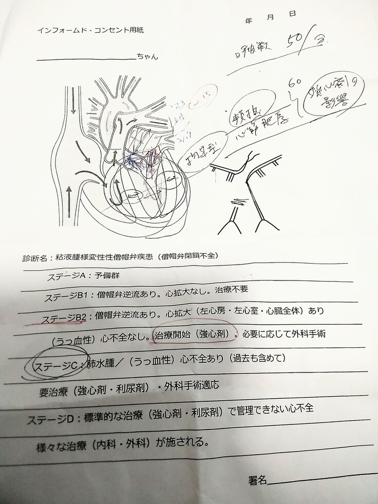 Cielが僧帽弁閉鎖不全症と診断を受けた時点で、僧帽弁閉鎖不全症は既にステージB2まで進行していました。