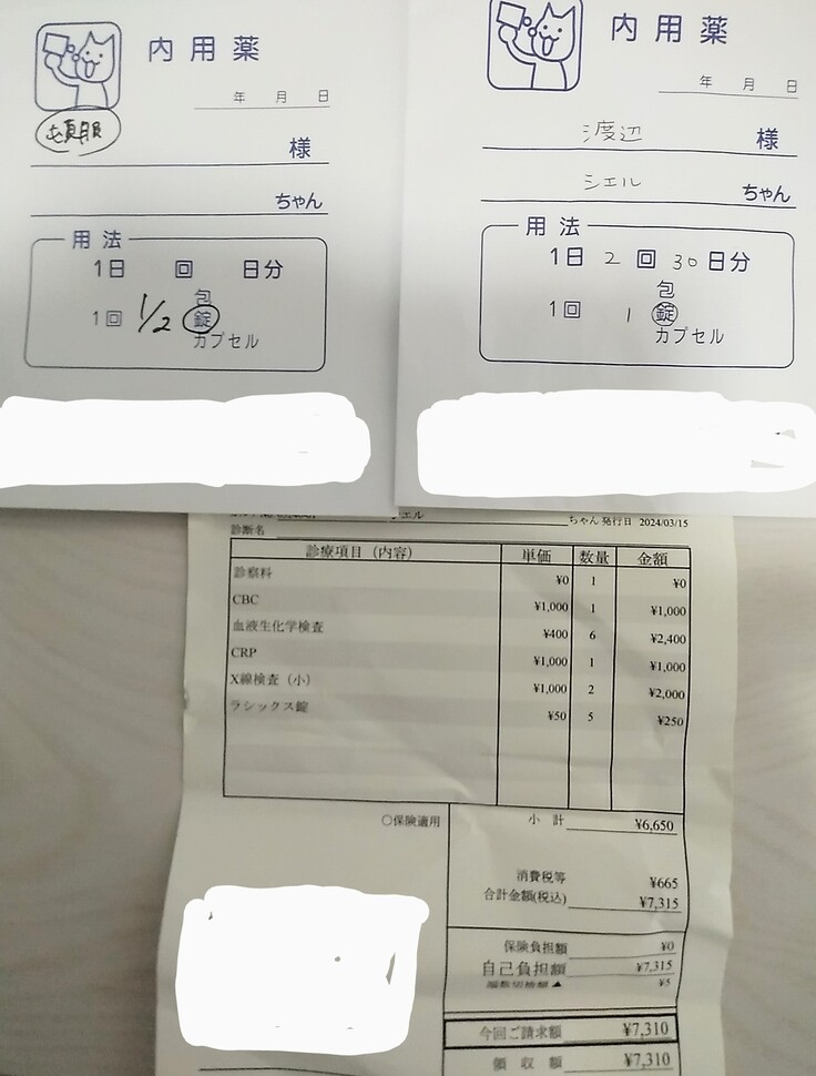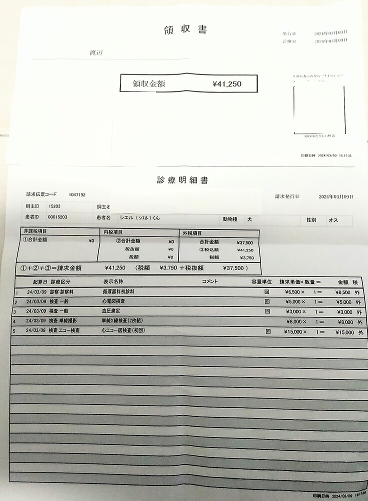 ※病院でいただいた領収書の一部でございます。