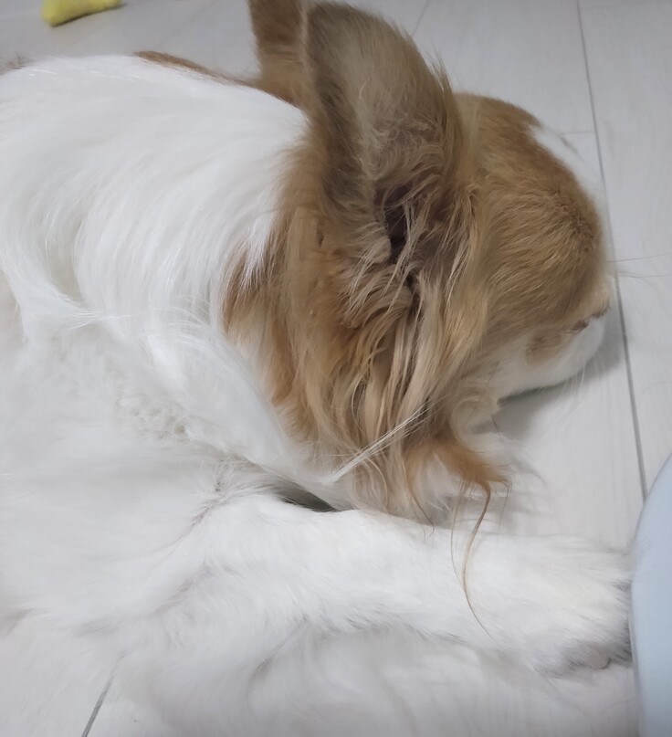 ですが、ここ数日、横向きになって寝ても息苦しいのか直ぐに姿勢を変え、足を前に出して伏せの状態で寝るようになりました。