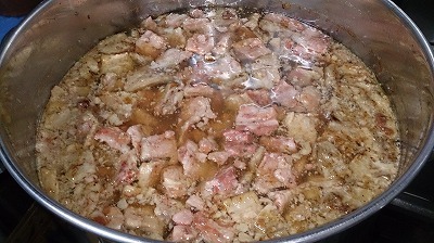 これから解凍してカット後、軟骨を鍋に入れて硬めに加熱し冷やします。