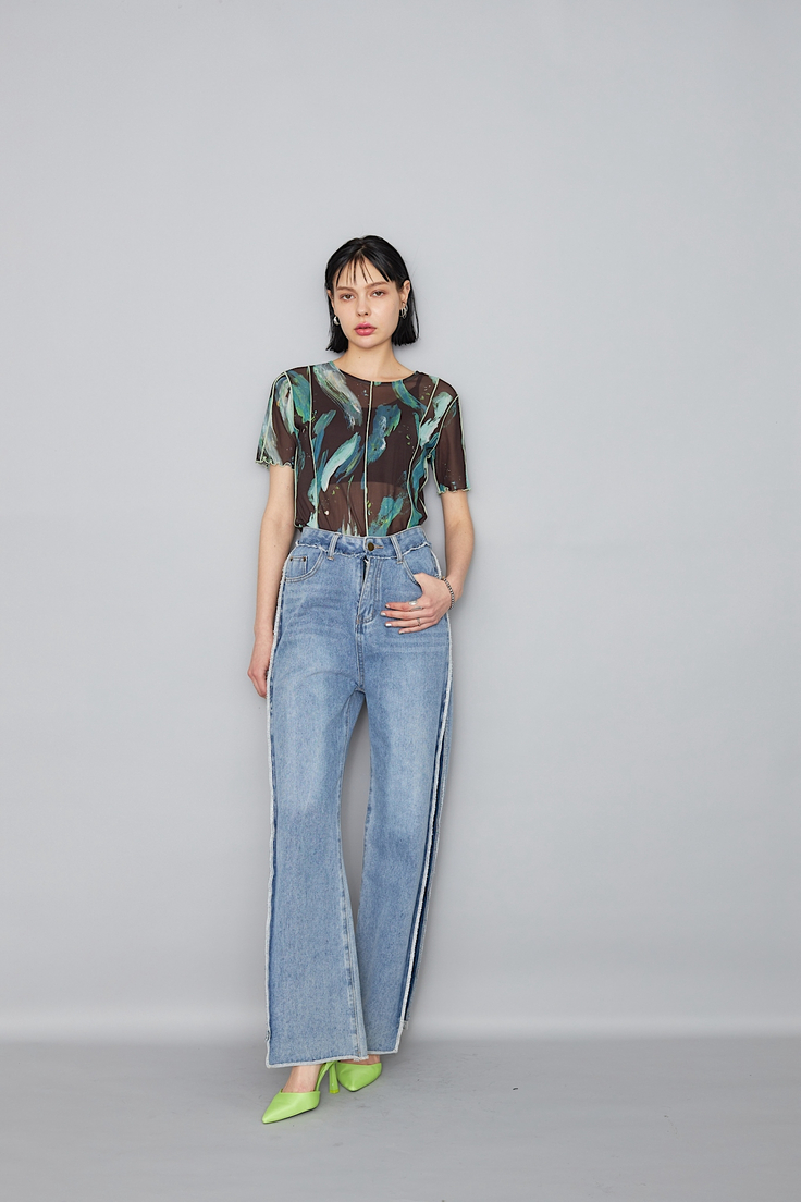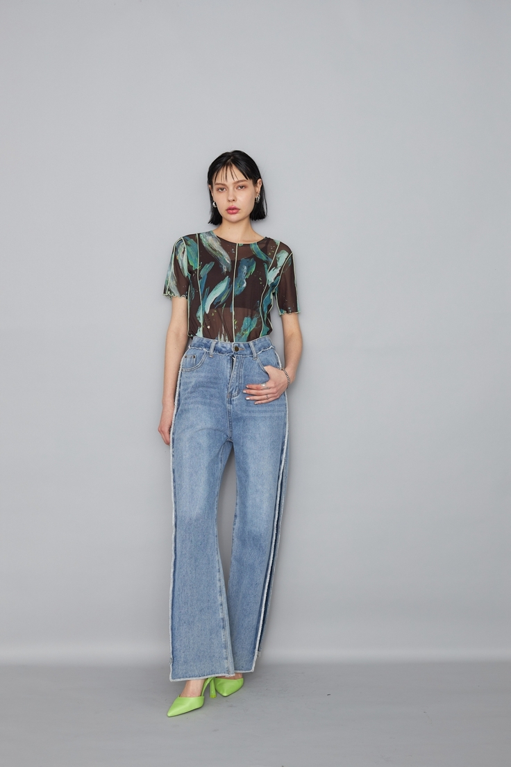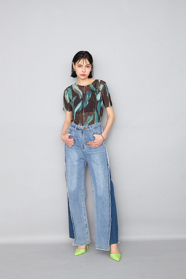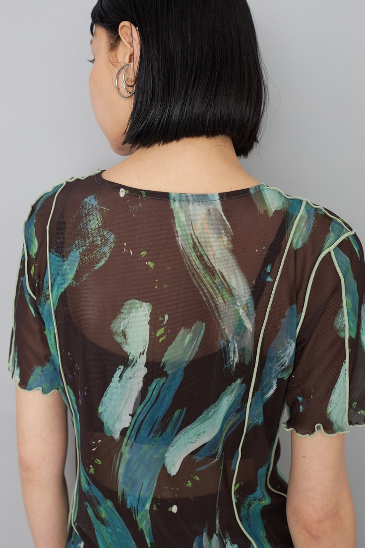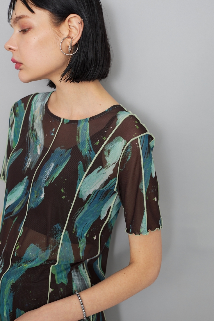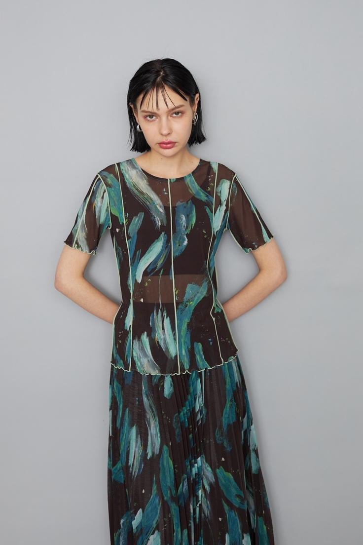 透け感のあるシアー素材にオリジナルのニュアンスアートをプリントしております。