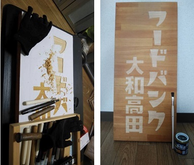 市民の方のご好意で立派な板と彫刻刀をお借りでき、中学校以来の