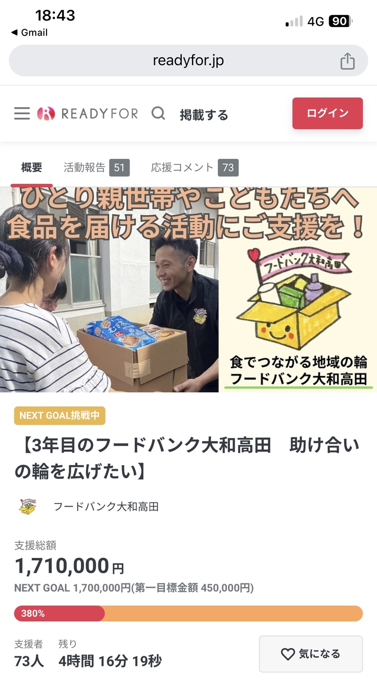 7月22日 にスタートしたフードバンク大和高田の初めてのクラウドファンディング