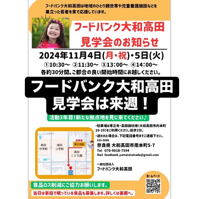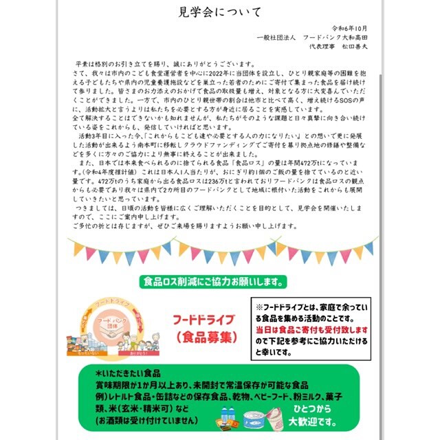 尚、当日はフードドライブ(食品募集)の受付をしていますので