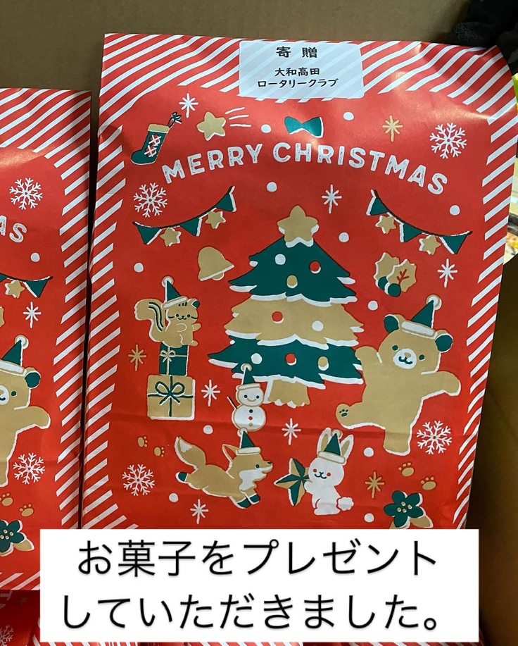 こどもたちが大好きなお菓子の詰め合わせをプレゼントしてくださいました。可愛いラッピングに大喜び♪