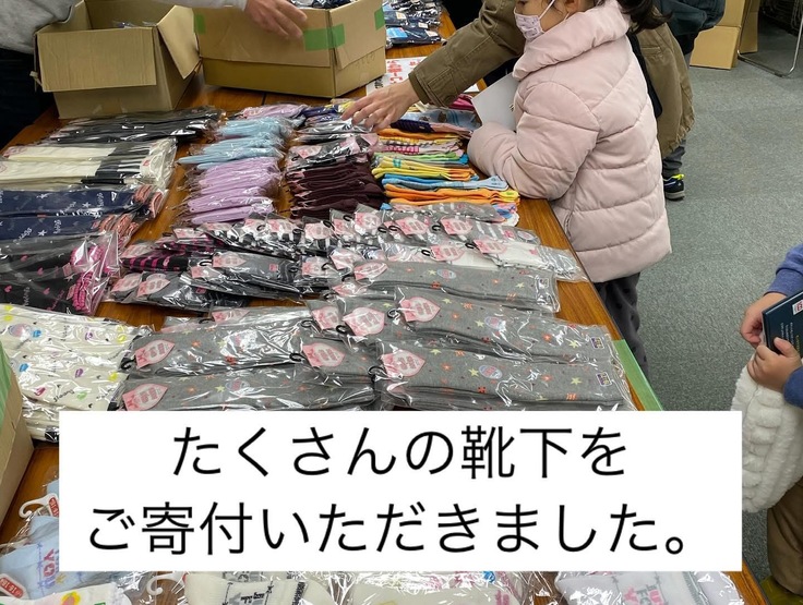 たくさんの靴下をご寄付いただき一世帯ずつ選んでもらいました。