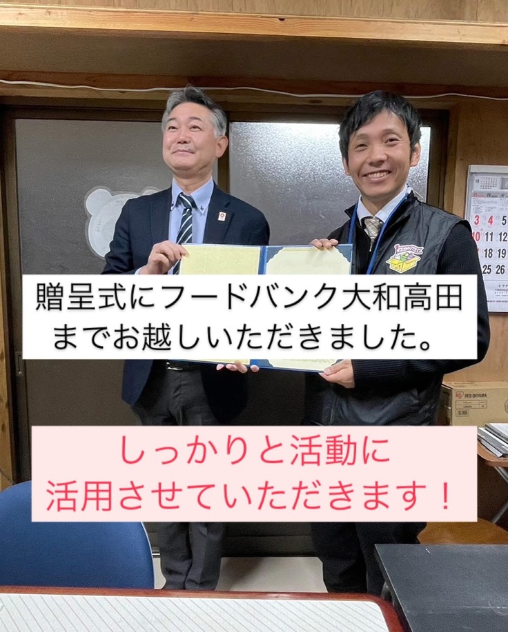 活動の為、市外に車を走らせる事も多く、これを機に食品を届けたり、集めたりなど丸紅基金様の想いを大切にしっかりと活動に使用させていただきます。