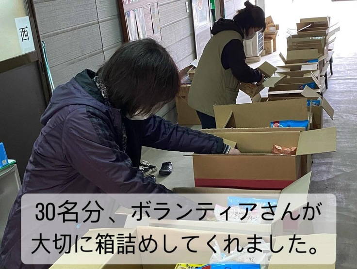 ご寄付いただいた食品を大切に。ボランティアの手によって箱詰めさせていただきました。ご協力いただいている皆様、施設職員の皆様、誠にありがとうございます☺︎